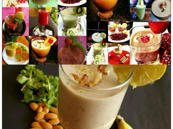 Breakfast – Mix different chopped fruit with yogurt, nuts and seeds and enjoy. Fruits will give enough sweetness so you don’t need to add any sweetener. Nuts and seeds will give a crunch. You will definitely love the healthy nutritious bowl. Make smoothie with fruits, yogurt, paneer or milk. You may like to try different types of smoothie recipes from this blog. Click here for the recipes of different types of smoothie.